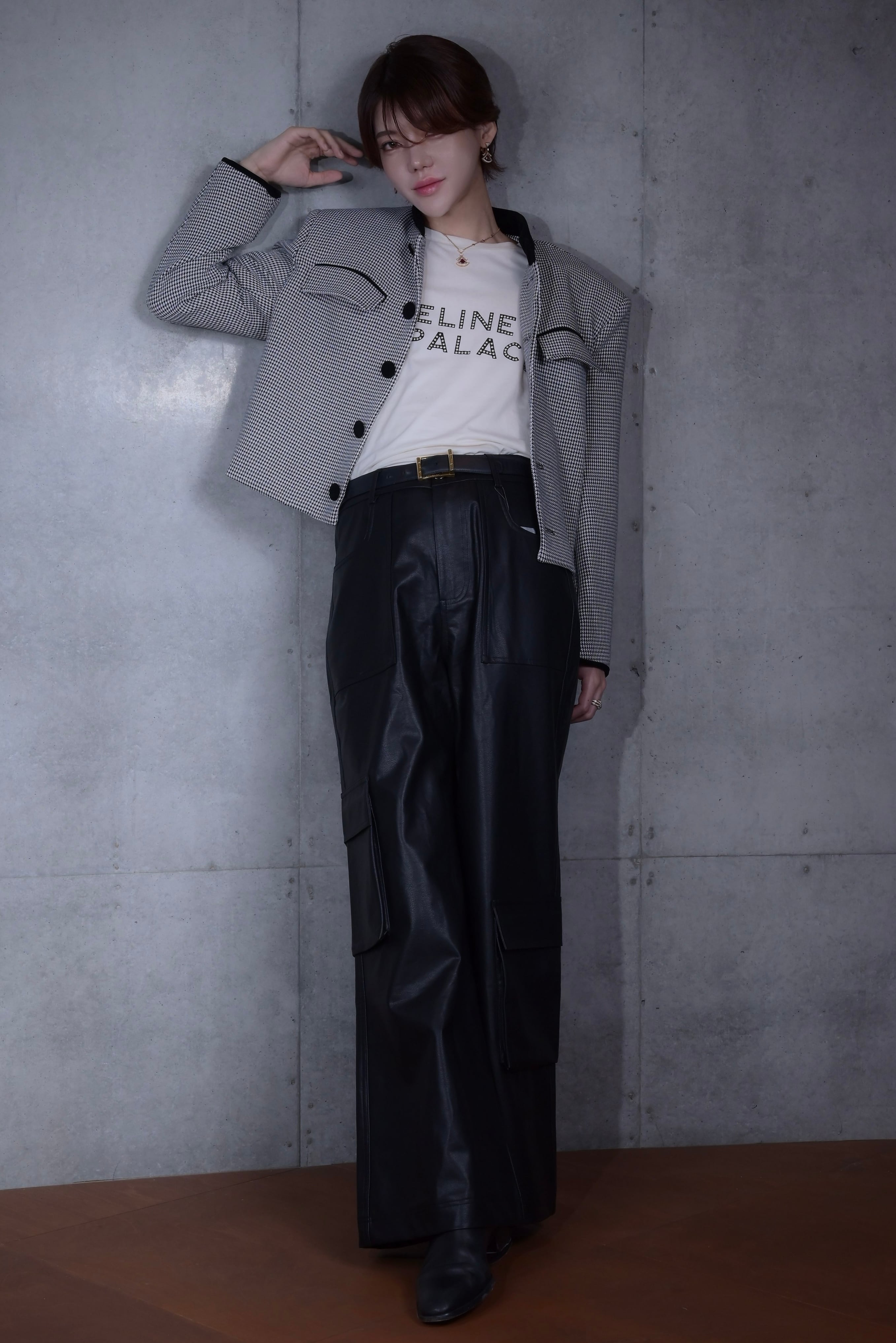 【九条音弥 AW25-November Selection Item SET-formal-】 音弥さん11月セレクトアイテムセットとなります。 クロップド丈のジャケットは千鳥格子で綺麗めに、ボトムスはレザー素材を使用することで今季のトレンドをしっかり加えた合わせとなっております。 トータル10%のお値引きが入りますので、単品でのお求めより、大変お得です◎ ワンセットでトータルコーディネートもお手軽に叶いますし、それぞれ別々にもお使い頂くことが可能です。 ⚠️インナー、ベルトは私物です。 ⚠️SETではSサイズのお取り扱いはございません。ご了承くださいませ。 ※音弥さん着用サイズ:M 身長:180cm 体重:60kg